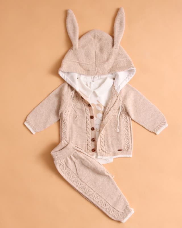 این ست شامل یک سوییشرت کلاه دار و یک پیراهن و یک شلوار است.