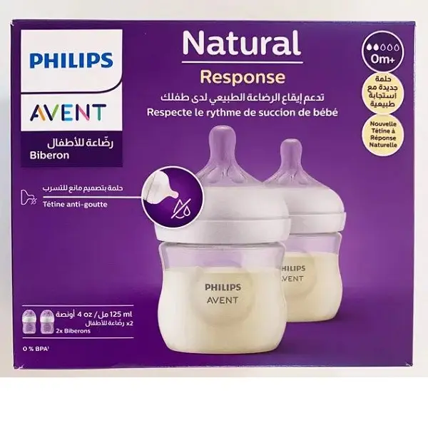 شیشه شیر نچرال 125میل ریسپانس اونت دو عددی Philips Avent scy900/02